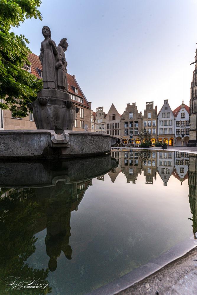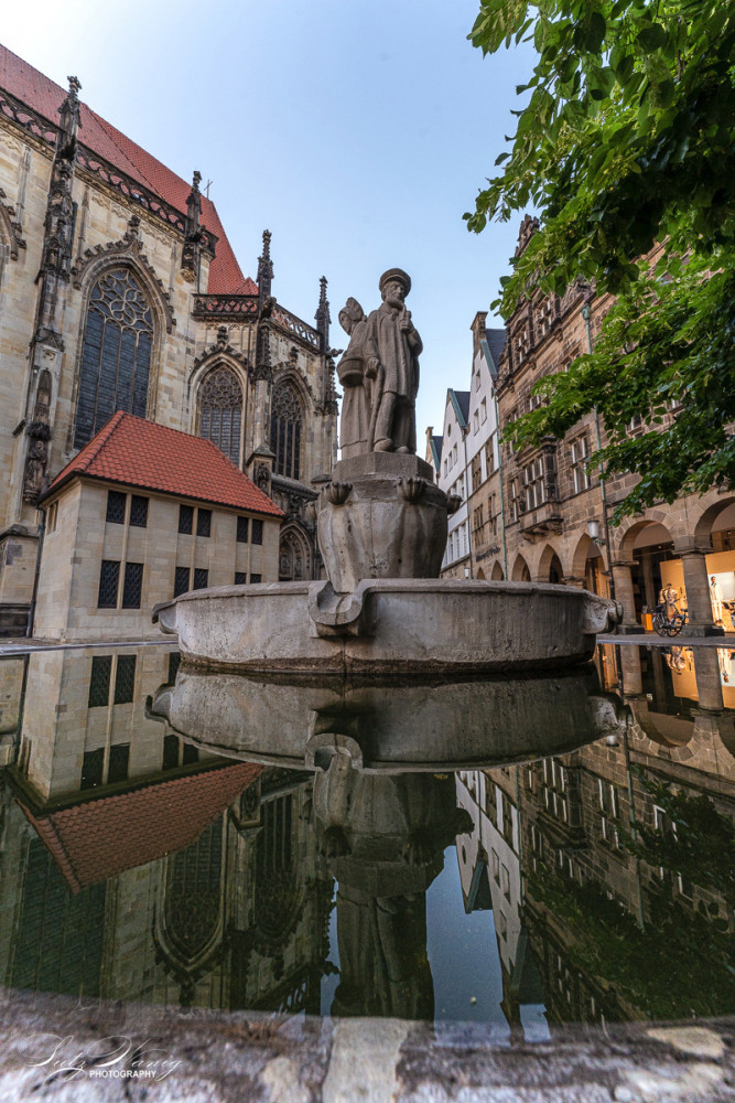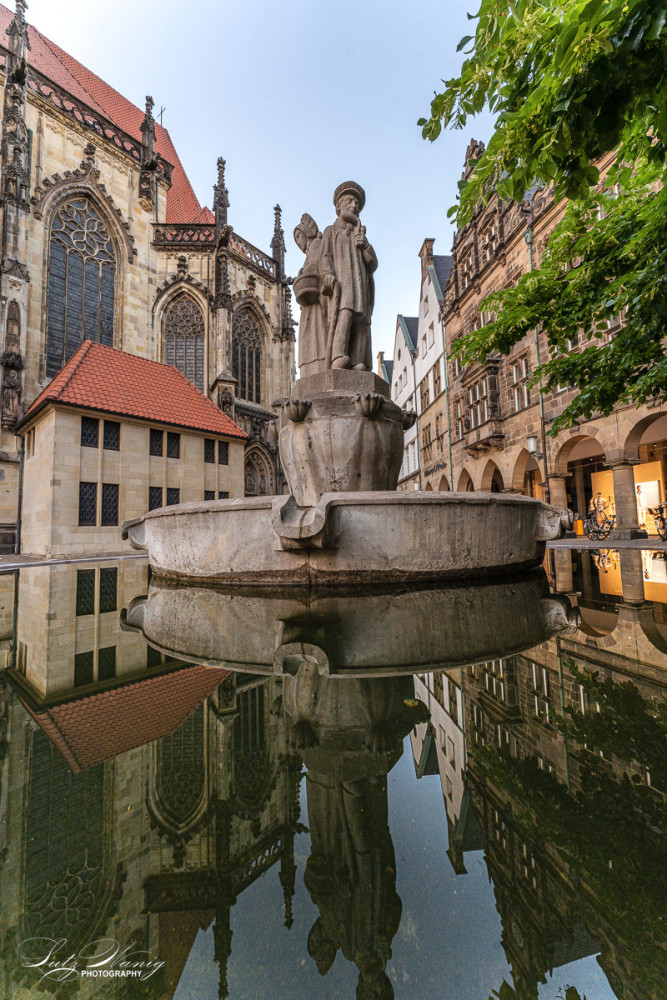 Der Lambertibrunnen auf dem Lambertikirchplatz in Münster ist ein beliebter Treffpunkt und ein bedeutendes Stück Stadtgeschichte.