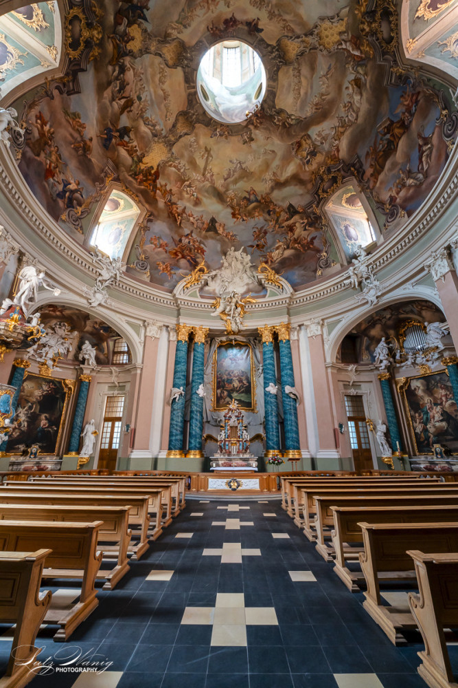 Die Kirche wurde 1751 fertiggestellt, mit beeindruckenden Stuckarbeiten von Jakob Rauch und Fresken von Johann Adam Schöpf. 1753 fand die feierliche Einweihung statt.