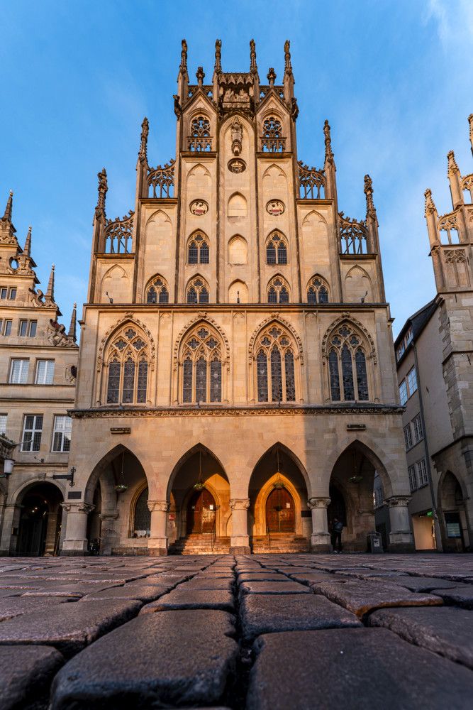 Das historische Rathaus von Münster, gelegen am Prinzipalmarkt 10, ist neben dem St.-Paulus-Dom eines der bekanntesten Wahrzeichen der Stadt.