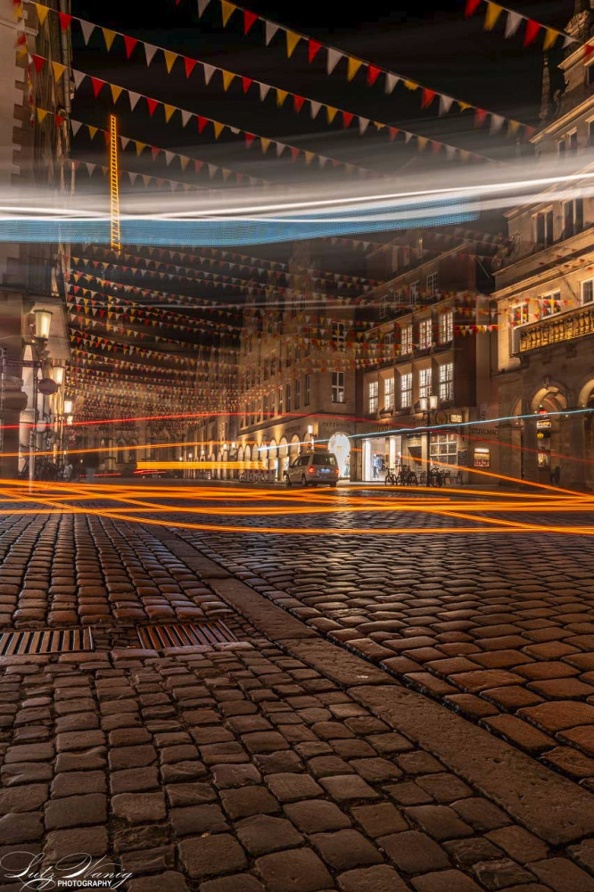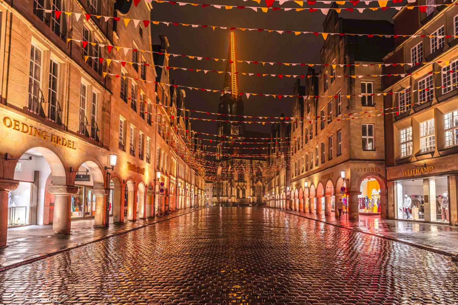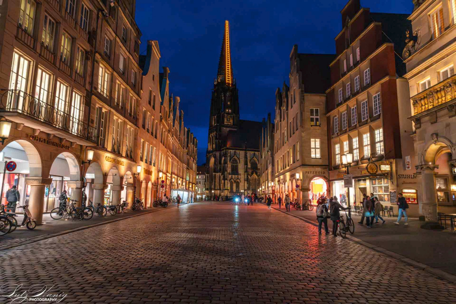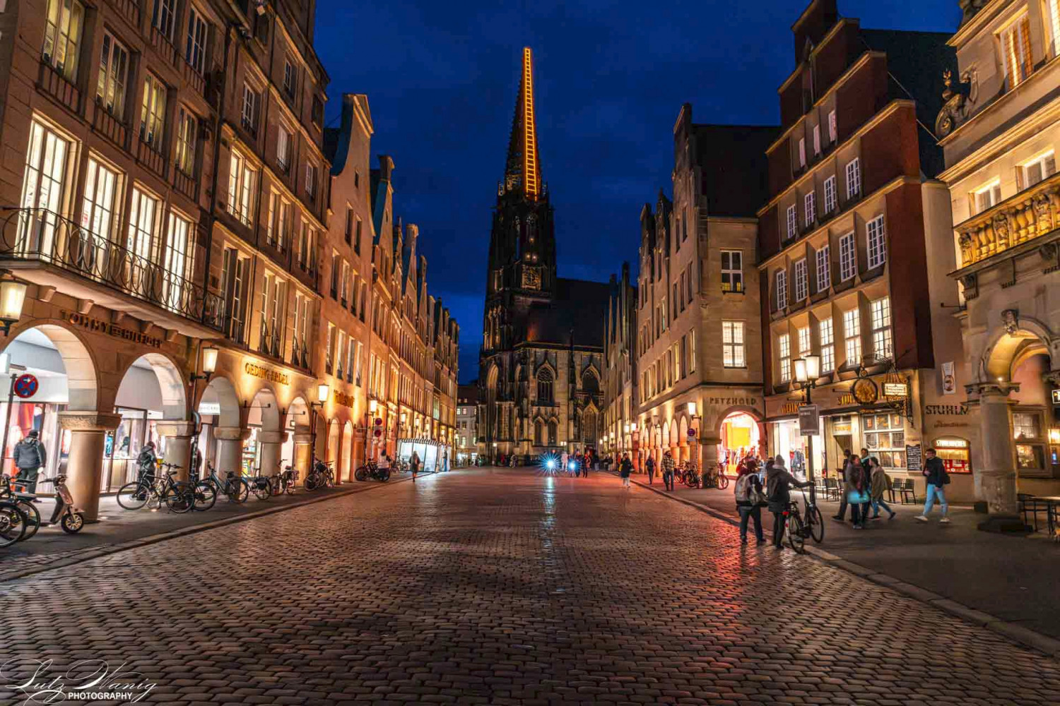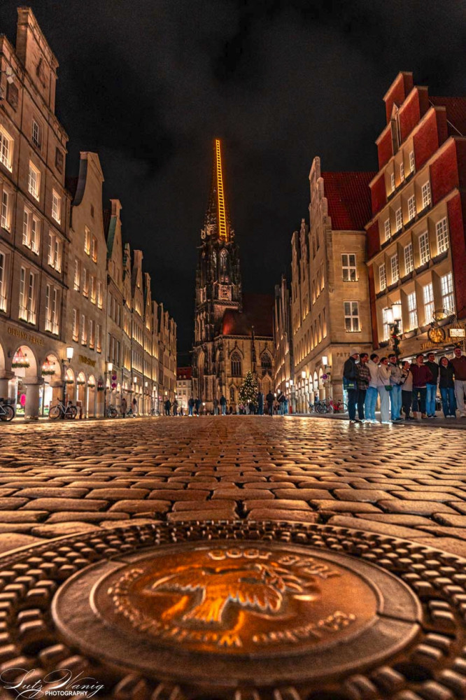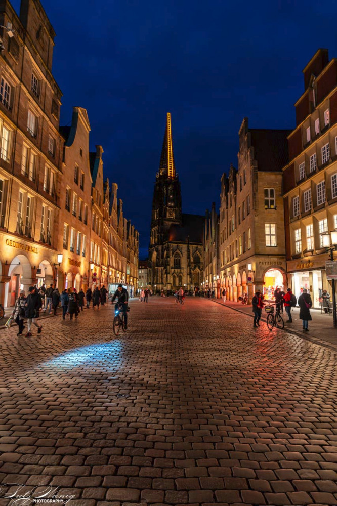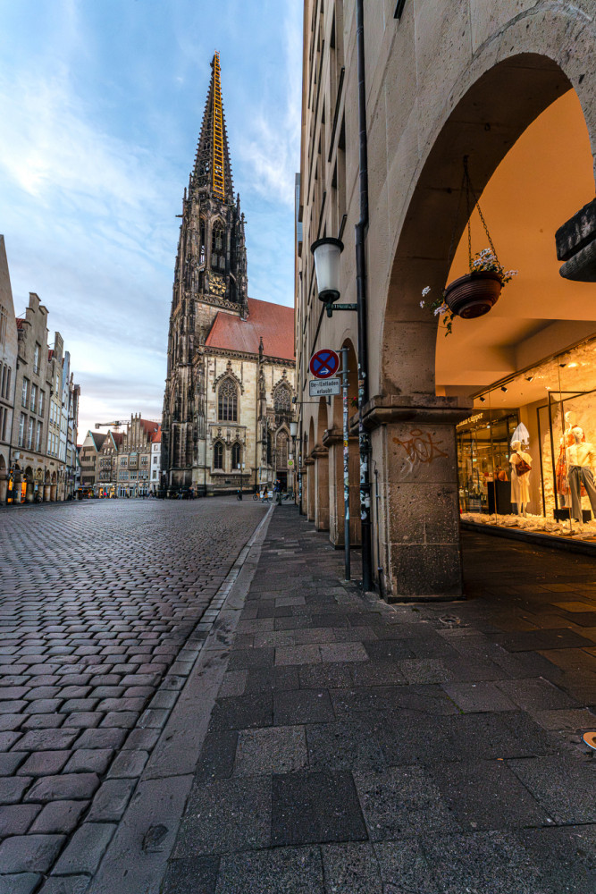 Münster - Prinzipalmarkt mit dem Blick auf die St. Lambertikirche mit der Himmelsleiter